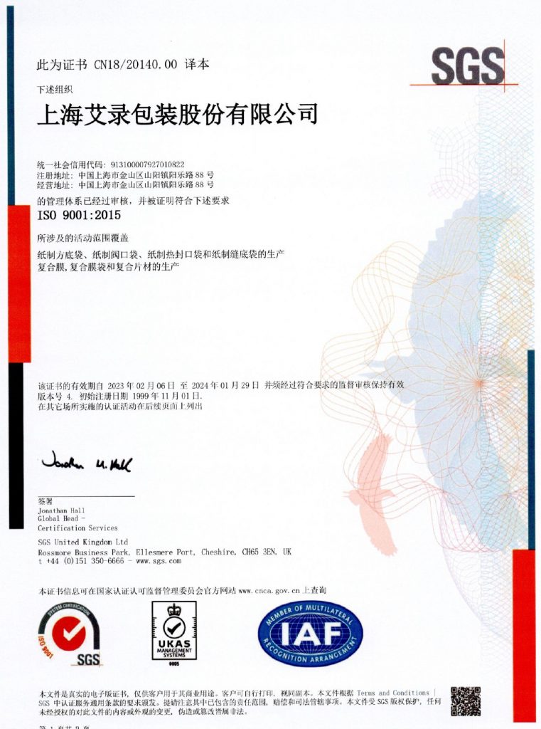 上海艾錄包裝股份有限公司(證券簡稱:上海艾錄 證券代碼:301062)成立于2006年,主要從事工業(yè)用紙包裝、塑料包裝及智能包裝系統(tǒng)的研發(fā)、設(shè)計(jì)、生產(chǎn)、銷售以及服務(wù)。經(jīng)過多年的持續(xù)發(fā)展,公司已由國內(nèi)領(lǐng)先的工業(yè)用紙包裝公司,成長為一家工業(yè)與消費(fèi)包裝產(chǎn)品皆備的軟體包裝一體化解決方案提供商,并通過智能化、柔性化、定制化的生產(chǎn)能力,為妙可藍(lán)多、蒙牛、光明、雀巢、菲仕蘭、 陶氏、巴斯夫、沈陽化工、佰利聯(lián)、德高、立邦、東方雨虹、美巢等國內(nèi)外知名工業(yè)及消費(fèi)類企業(yè)客戶提供包裝解決方案所需的相關(guān)產(chǎn)品。